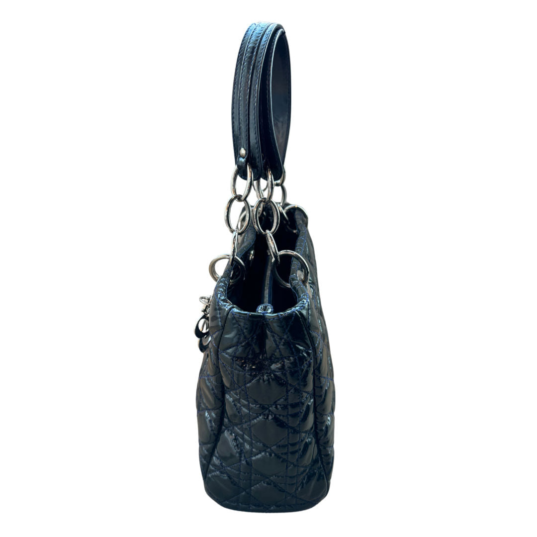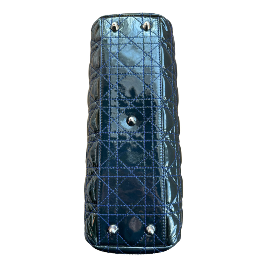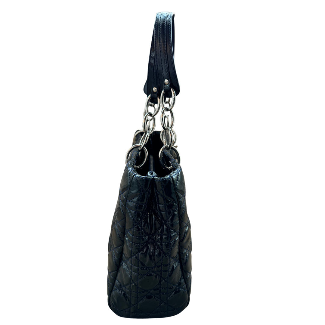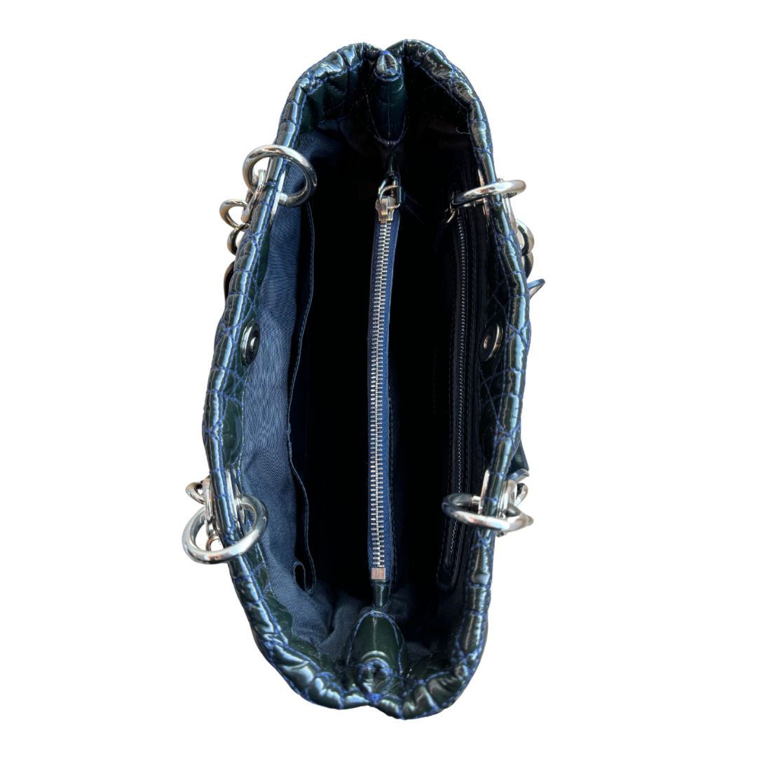 Dior Dark Green Cannage Quilted Patent Leather Shopping Tote Bag - Pre-Owned